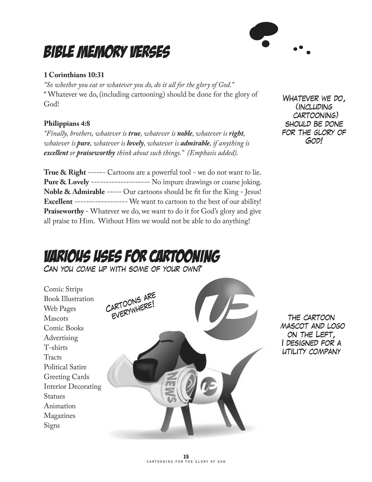 Like to Doodle? Turn your doodles into great cartoons as you learn new skills from this insightful step-by-step book, Cartooning for the Glory of God, that will guide you in your pursuit to become an excellent cartoonist. Daniel Nuckols' incisive wit will challenge you to see the world in a unique and humorous light as you develop a cartoonist's eye. Dan Nuckols has been cartooning ever since he was about 5. From drawing caricatures on mission trips in Guatemala and Mexico to local county fairs ... being published in the Washington Post or on other platforms, his caricatures and cartoons have reached the lives of many. Dan holds a BA from Northwestern College in Biblical Studies and a minor in Graphic Design. He is currently producing and directing films through www.NicolFilms.com. His vision is to inspire a generation of cartoonists who not only strive for excellence in their artwork, but who endeavor to reach a lost world for Christ by using their cartoons as a powerful communicative tool to spread the Gospel.